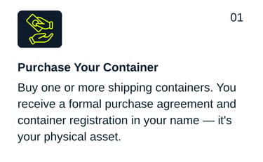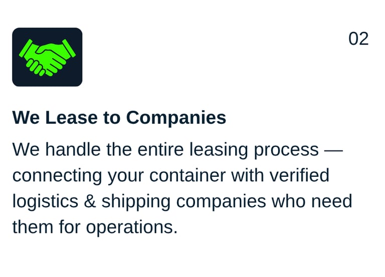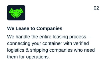 Earn stable monthly rental income by leasing shipping containers to verified logistics companies — asset-backed, professionally managed.