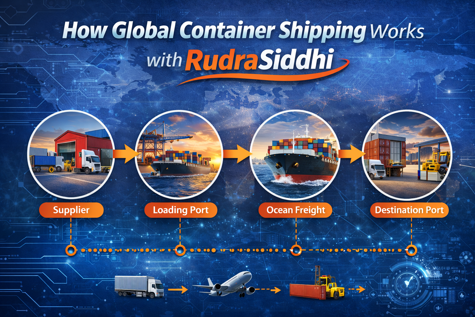 By linking markets, industries, and consumers across continents, global trade has completely changed the modern world. The global container shipping industry, a potent force that facilitates the smooth transportation of goods across oceans, is at the center of this interconnected system. At RudraSiddhi, we recognize that container shipping is about more than just moving goods; it's about promoting economic expansion, maintaining supply chains, and helping companies effectively access international markets.