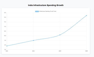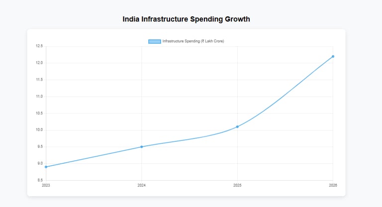 The government has raised infrastructure spending to an all-time high of ₹12.2 lakh crore. This covers ports, railroads, freight corridors, highways, and multimodal logistics hubs